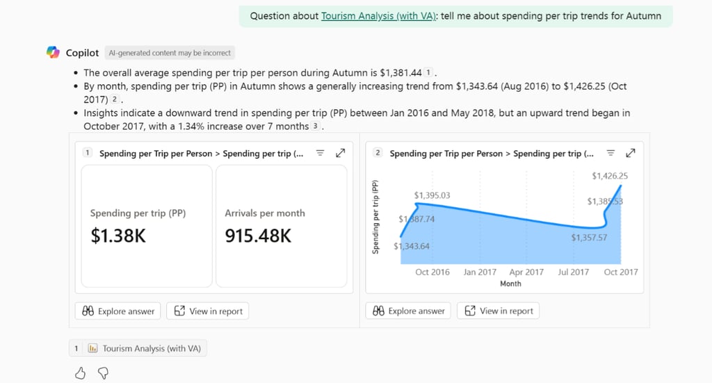 Jeśli wizualizacje nie dostarczają żądanych informacji, Copilot sięga do modelu semantycznego, by wygenerować odpowiedź, samodzielnie filtrując dane