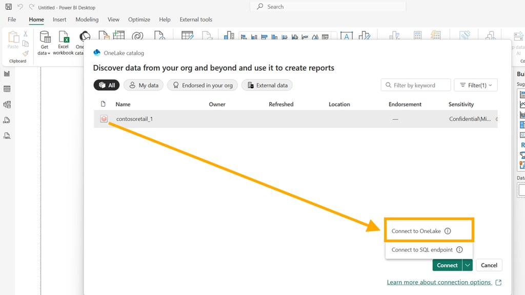 Kolejny krok w rozwoju Direct Lake! Można teraz używać katalogów Azure Databricks jako źródła danych dla tabel Direct Lake w Power BI Desktop.