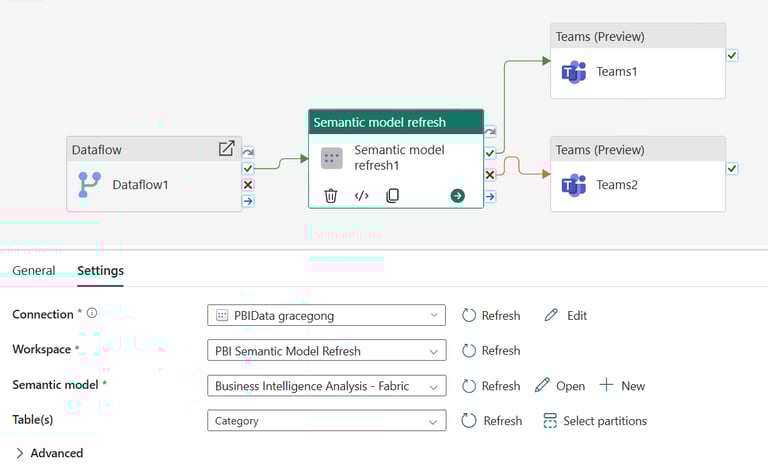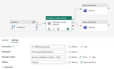 Szablony pozwalają na typowe scenariusze, na przykład uruchomienie refreshu po zakończeniu dataflow, zaplanowany harmonogram lub sekwencję refreshów, w której najpierw odświeżany jest model A, a dopiero potem model B, którego refresh będzie zależny od wyników A. W konfiguracji określamy workspace, dataset, zakres tabel i partycji do odświeżenia, liczbę prób ponowienia w razie błędów oraz zasadę oczekiwania na zakończenie poprzednich kroków. Dzięki czemu możemy tworzyć bardziej niezawodne procesy ETL, działające w schemacie przyczynowo-skutkowym, a wszystko bez pisania skomplikowanych skryptów.