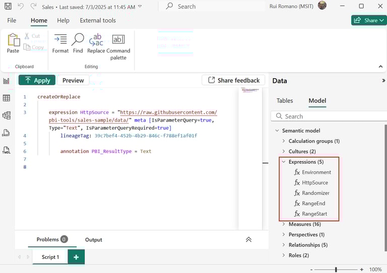 Teraz można przeciągnąć całe sekcje (miary, tabele, kolumny) z eksploratora modelu bezpośrednio do edytora kodu
