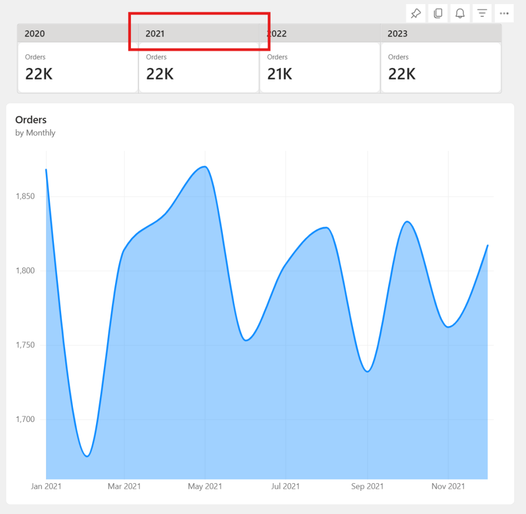 Porada: New Card Visual warto potraktować jako centralny element strony z KPI. Jeśli do tej pory używałeś kilku pojedynczych kart, teraz możesz je skonsolidować w jeden, bardziej czytelny blok, ponieważ New Card Visual pozwala upchnąć wiele KPI w jednym miejscu (co ułatwia utrzymanie i edycję). Ponadto dzięki interakcyjności nagłówków kategorii użytkownik jednym kliknięciem może przełączać kontekst pozostałych wykresów, otrzymując w zasadzie dodatkową opcję filtrowania.