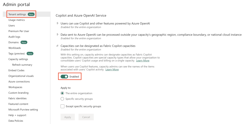 🔐 Oznaczenie Fabric Copilot Capacity staje się domyślnie włączone