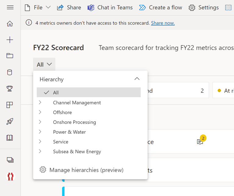 Co: Microsoft usuwa funkcję hierarchii w scorecardach oraz widok heatmap powiązany z hierarchiami.
