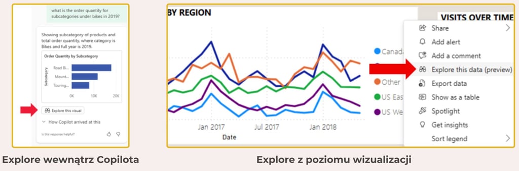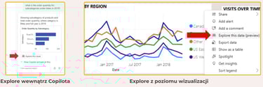Jedną z najciekawszych nowości jest możliwość uruchomienia Explore bezpośrednio z wizualizacji wygenerowanych przez Copilot. Jak to działa w praktyce?
