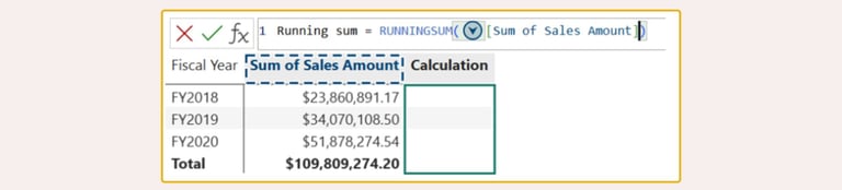Jakie obliczenia będą dostępne? Visual Calculations umożliwiają tworzenie obliczeń takich jak suma bieżąca, średnia krocząca, procent całości, ranking i wiele innych. Cały proces jest wsparty intuicyjne gotowe szablony, podpowiedzi parametrów i podświetlanie składni. Co w teorii ma ułatwić tworzenie bardziej zaawansowanych analiz każdemu, kto ma styczność z Power BI w organizacji: od Jacka z marketingu, po członków zarządu.