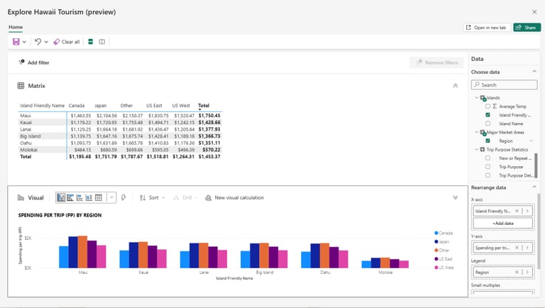 Wyobraź sobie sytuację: zadałeś pytanie Copilot, otrzymałeś wizualizację, ale potrzebujesz niewielkich modyfikacji. Dotychczas musiałeś dodać ją do raportu, a następnie edytować. Teraz wystarczy kliknąć "Explore this visual" i możesz natychmiast dostosować wizualizację do swoich potrzeb.