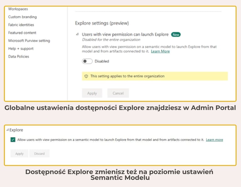 Mimo że Explore wydaje się intuicyjne (dla nas, analityków), warto przeszkolić użytkowników z podstawowych funkcji i możliwości. Kluczowe jest również przemyślenie, które modele semantyczne powinny być dostępne do eksploracji i czy w ogóle chcemy włączać tę funkcję w organizacji. Z doświadczenia wiem, że nie każdy model nadaje się do udostępnienia szerszej publiczności. Nie chodzi tutaj o wrażliwość danych, ale o nieprzystosowanie modelu dla użytkowników niebędących analitykami.