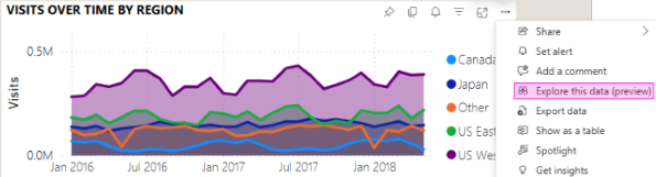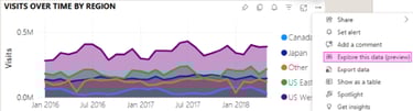 Funkcja „Explore This Data” (w wersji preview) pozwala łatwiej eksplorować dane bez konieczności pobierania raportu do Power BI Desktop czy ryzyka namieszania w opublikowanym raporcie. Dostępne są dwa główne sposoby korzystania z tej funkcji: