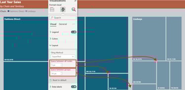 Treemap doczekał się nowych opcji formatowania i dobrze, bo zawsze postrzegałem tę wizualizację jako trochę niesforną i odstającą od swoich braci i sióstr. 😅 Teraz kompromisów podczas wyboru Treemap będzie mniej, ponieważ Microsoft dodaje nowe opcje formatowania dla tego obiektu. Znajdziesz je pod opcją "Layout".