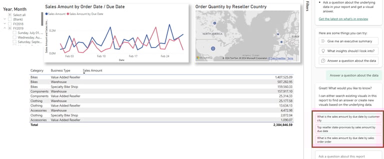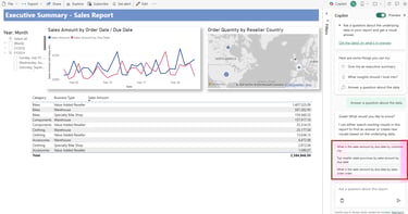 Co ważne, pytania te będzie można nieco personalizować za pomocą funkcji Q&A w Power BI Desktop, co można postrzegać jako integrację wizualizacji Q&A z Power BI z Copilotem. Użytkownicy będą mogli wprowadzać własne pytania i sugestie, które następnie będą wykorzystywane przez oba narzędzia.