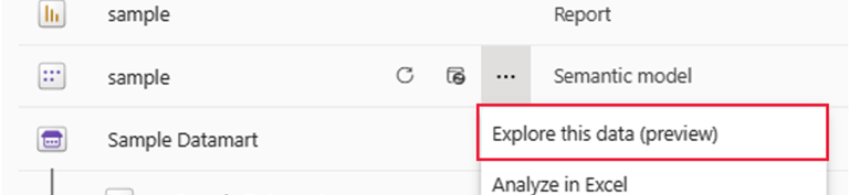 Aby przeprowadzić eksplorację, potrzebujemy uprawnień co najmniej na poziomie Build do modelu oraz licencji Pro lub Premium.