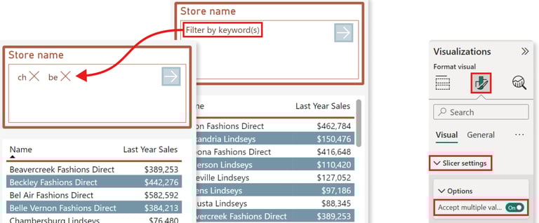 Funkcjonalność, którą przedstawiałem w jednej z rolek na Instagramie, gdy tylko Microsoft ją opublikował, właśnie doczekała się ciekawego usprawnienia! Jak wtedy wspominałem, to interesująca funkcja, ale jeszcze niedopracowana. Teraz jest szansa, że choć trochę się to zmieni, ponieważ otrzymujemy możliwość filtrowania po kilku słowach kluczowych jednocześnie, co odblokowuje znacznie większe możliwości przeglądania danych. Nie trzeba już kombinować i szukać obejść. Wystarczy w ustawieniach slicera włączyć opcję „Accept multiple values” i gotowe. Prosta i przyjemna zmiana. 💙