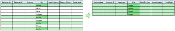 Jeśli po odświeżeniu danych z tabeli Customer w kolumnie City znikną wiersze z nazwą „London”, to tabela TABLE_1 również się nie odwoła, ponieważ nie będzie miała z czego utworzyć danych.