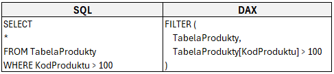 Podobny kod (z drobnymi zmianami) moglibyśmy również użyć w DAX Query. Dzięki temu możliwe będzie wywołanie podglądu danych. Trzeba jednak pamiętać o funkcji EVALUATE, która w DAX Query jest wymagana do określenia elementów, które mają zostać zwrócone w zapytaniu.